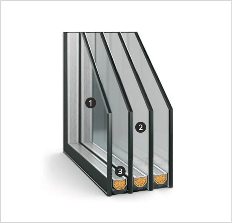 Трехкамерный стеклопакет REHAU обладает высокой теплоизоляцией, улучшенной звукоизоляцией, а также способствует экономии энергии, удерживая тепло внутри помещения.